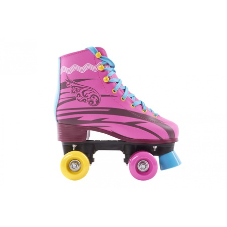 Micile patinatoare de nivel incepator si mediu vor gasi patinele cu rotile, deosebit de confortabile si cu o dotare tehnica pe masura iar stilul unic le va scoate in evidenta. Frana din fata si rulmentii ABEC-5 asigura o calatorie sigura si confortabila.